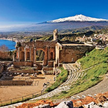 Partindo do cais no ônibus com um guia local. A pequena e pitoresca cidade de Taormina goza de uma localização maravilhosa numa terraça com vistas para o Mar Jónico, na costa oriental da Sicília. Ele ainda mantém o seu carácter medieval, embora se tornou um dos mais populares pontos turísticos do Mediterrâneo. A pequena cidade, que se transformou em um dos locais mais populares do Mediterrâneo, ergue-se sobre um terraço com vista para o mar e tem um caráter medieval encantador. Os passageiros deixarão o ônibus e começarão a viagem a pé, durante o qual se poderão admirar (por fora), o famoso Palácio Corvaja (gótico) do século XV. Depois você vai visitar o Teatro Grego, que surpreende por sua amplitude, sua extraordinária acústica e sua localização impressionante. Este teatro foi reconstruído em estilo romano no século II D.C., com 109 metros de diâmetro. É o segundo maior teatro de Sicília, depois de Siracusa. Desde das zonas altas, há vistas espectaculares para o majestoso Monte Etna, o maior vulcão da Europa e ainda ativo. Antes de voltar para o barco, os passageiros terão tempo livre para passear, onde você terá a possibilidade de comprar artesanato local ou caminhar até a Piazza del Duomo, para descobrir o antigo Mosteiro Dominicano, agora convertido num hotel de luxo.