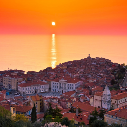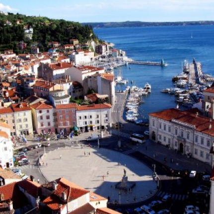 Piran é o monumento cultural mais bem preservado na região de Istria na sua arquitetura e se reflete a influência da República de Veneza. Todo esse tempo manteve a estrutura medieval de estreitas e sinuosas ruas, casas aglomeradas em formato cascada, suas muitas praças e igrejas e o contato directo com o mar. A praça Tartini, que decora o centro antigo da cidade, deve seu nome ao famoso violinista Giuseppe Tartini, que deu a conhecer o nome de Piran ao mundo e cuja estátua é seu ponto principal. Vamos continuar a Portoroz, uma pequena cidade medieval que a sua fama e riqueza foi adquirida com a produção de sal nas salinas, uma das maiores na região no passado. Embora hoje em dia estejam abandonadas, exatamente as salinas com componentes naturais têm sido uma atração para os visitantes; seus efeitos benéficos para a saúde permitiram o desenvolvimento do turismo em Portoroz e já no século XIX, os primeiros hotéis e banhos termais foram construídos.