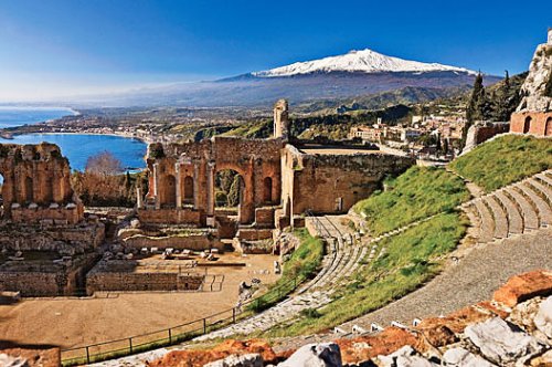 Partida desde o cais em ônibus com guia local. A pequena cidade pitoresca de Taormina goza de uma excelente localização em um terraço com vista para o mar Jónico, na costa leste da Sicília. Ela ainda mantém o seu carácter medieval, embora tenha se tornado uma das estâncias turísticas mais populares do Mediterrâneo. Os passageiros deixarão o ônibus e começarão o passeio a pé, durante o qual se poderão admirar (fora) do famoso Palácio Corvaja (Gothic) que data do século XV. Depois se visitará o teatro grego, que é espantoso na sua amplitude, sua acústica extraordinária e a sua localização privilegiada. Este teatro foi reconstruído em estilo romano, no século II dC, com um diâmetro de 109 metros. É o segundo maior teatro na Sicília após Siracusa. Desde as montanhas, há uma vista espectacular sobre o majestoso Monte Etna, o maior vulcão ativo da Europa e ainda ativo. Antes de voltar para o navio, os passageiros terão tempo livre para passear ao longo da ampla zona de pedestres, onde terão a oportunidade de comprar o artesanato local ou caminhar até a Piazza del Duomo para descobrir o antigo mosteiro dominicano, agora convertido em um hotel de luxo. Regresso ao porto para embarque.