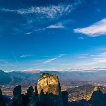 Vamos a Meteora, um dos lugares mais espetaculares da Grécia. Os grandes pináculos de pedra que a edificam são antigas formações geológicas, e os mosteiros formam sobre eles uma paisagem única.