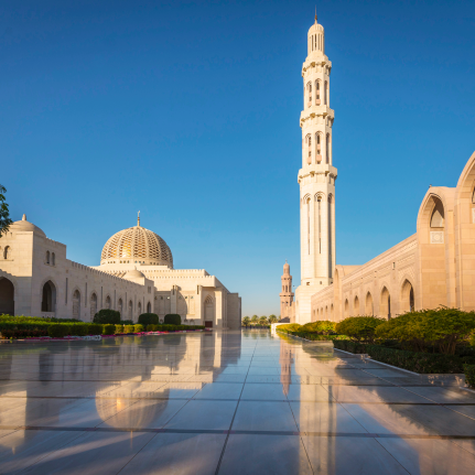 Começaremos a nossa excursão de hoje com a visita da Grande Mesquita, a maior mesquita do sultanato de Omã, com capacidade de até 20.000 pessoas e uma obra muito importante da arquitetura islâmica: o seu interior contém o segundo maior tapete do mundo feito de uma só peça, tecido à mão. A Mesquita mede mais de 90 000 metros quadrados.