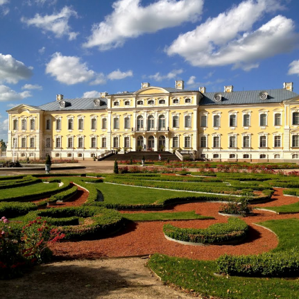 Rundale é um dos monumentos mais visitados do Palácio de Letônia. Rundale, conhecida como residência de verão do Duque da Curlândia Ernst JohannBiron, é um dos monumentos mais marcantes da arte barroca e rococó na Letônia construídos entre 1736-1740. O palácio foi projetado pelo famoso arquiteto italiano Francesco Bartolomeo Rastrelli, o criador do Palácio de Inverno em São Petersburgo. O interior do palácio esplêndido, contemporâneos lhe deslumbrará. Lustres de cristal, papel de seda, luxuosa tapeçaria, esculturas, azulejos, lareiras, espelhos, galerias elegantes e refinados e cores frescas fueron feitas pelo artistas italianos Francesco Martini e Carlo Zucci.