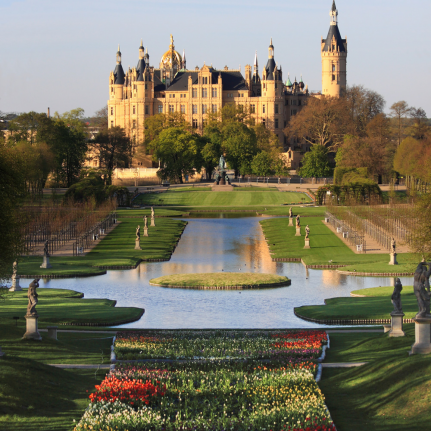 Wismar. Situada nas margens do Mar Báltico a cidade de Wismar fazia parte da Liga Hanseática e hoje é patrimônio da UNESCO. É conhecida por seu porto, as suas casas restaurada com grande cuidado, a sua praça do mercado, o seu monumento histórico típico de tijolo estilo gótico e a hospitalidade de seus habitantes. Começamos a visita ao mercado de Wismar onde descemos do ônibus e fazemos uma caminhada através do mercado com a arte de água e a prefeitura. Conheceremos a casa gótica "Alter Schwede", a praça da Igreja Maria com a exposição das obras da igreja, ao ar livre e "Fürstenhof", antiga sede e Tribunal de regentes suecos. Também visitaremos a igreja St. George com sua reconstrução, a igreja Heiliggeistkirche e a rua Lübsche com as suas casas antigas de comércio. Se o tempo também permitir conoceremos o sistema de valas medievais e irrigação, a igreja Nikolaikirche, Schabbelhaus e o porto antigo.