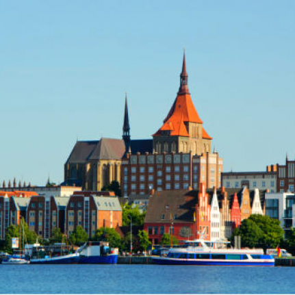 Rostock, a cidade hanseática de quase 800 anos, ainda mantém muito do seu encanto antigo e oferece hoje junto com a estância balneária de Warnemünde muitos aspectos culturais. universidade ativa e mundial e cidade portuária com prédios de tijolos típicos em seu centro histórico é marcado pelo charme do mar. Durante a visita, vamos conhecer a igreja mais importante da cidade, Santa Maria, a mesma que abriga um relógio astronômico de 1472, e da igreja de San Pedro. Também vamos ver o novo mercado onde a histórica Câmara Municipal e da Universidade remonta a 1419. Na arquitetura da cidade se destaca as casas históricas com fachadas de diferentes épocas: gótico, renascentista e barroco. também passam a estância balneária de Warnemünde, com praias de areia branca e calçadões, o mercado de peixe com pequenas casas de pescadores pitorescas, restaurantes de peixe rústico, barcos de pesca.